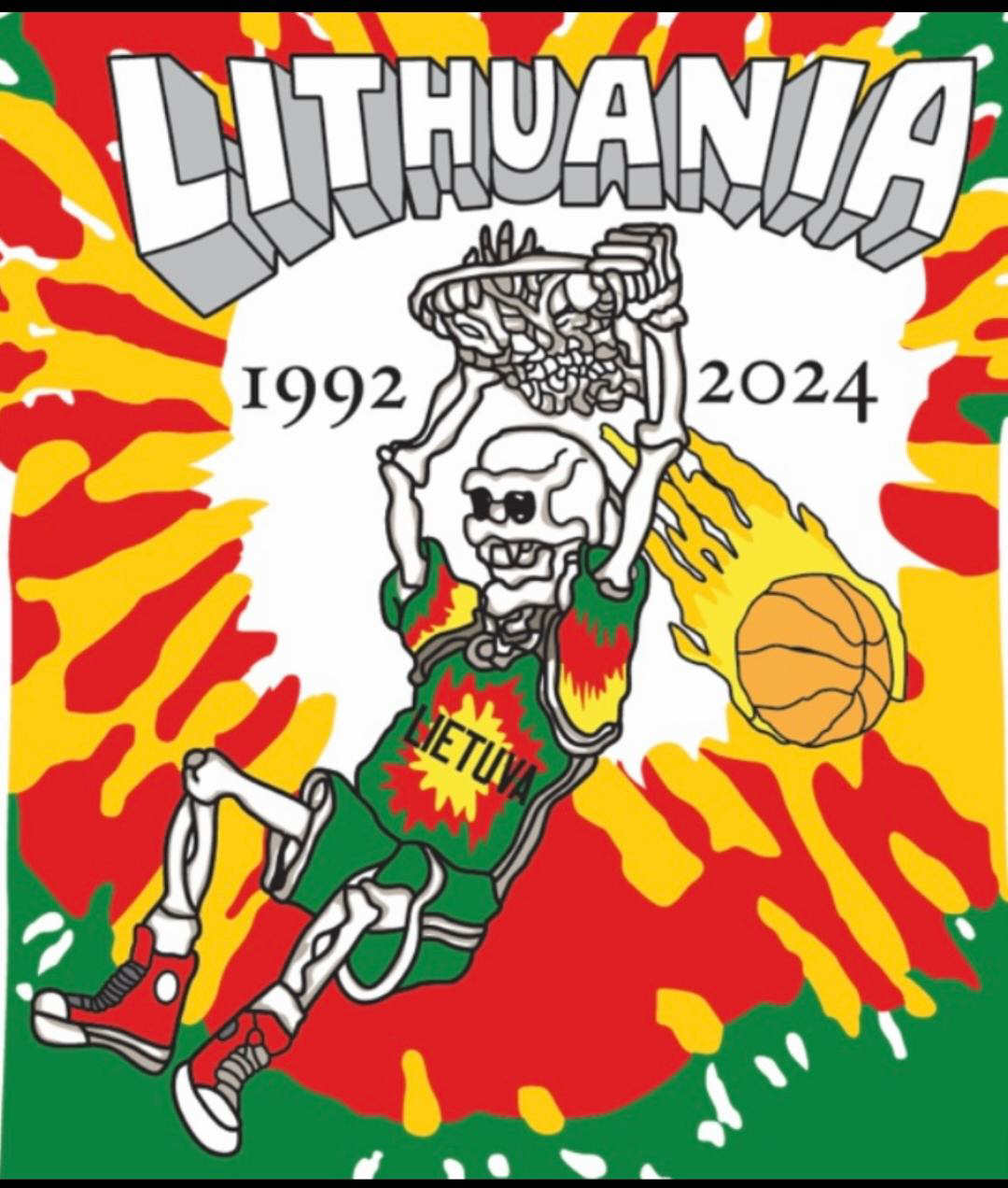 The Lithuanian Tie Dyed Skullman Jerseys became an international household icon when seen on the world stage of the 1992 Barcelona Summer Olympics. They were created by a New York fashion designer so the Lithuanian Olympic Men’s basketball team could have something fun to wear during the Olympics. But they ended up wearing them at the bronze medal ceremonies for the world to see.